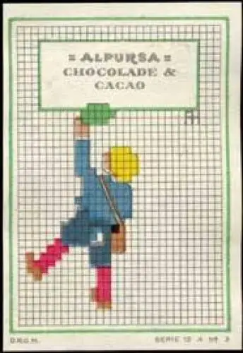 Chocolade & Cacao, Serie Nr. 12, Bild 3, Stickmuster-Serie, Stickerei, Größe/Zustand: 7x5 , guter Zustand, Original alte Reklamemarke die seinerzeit für die Werbung benutzt wurde