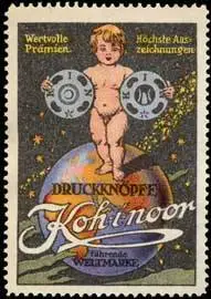 Druckknöpfe Koh-i-noor führende Weltmarke. Höchste Auszeichnungen, wertvolle Prämien. Knopf, Bekleidung, Handarbeit, Kind nackend, Größe/Zustand: 6x4 , guter Zustand, Original alte Reklamemarke die seinerzeit für die Werbung benutzt wurde