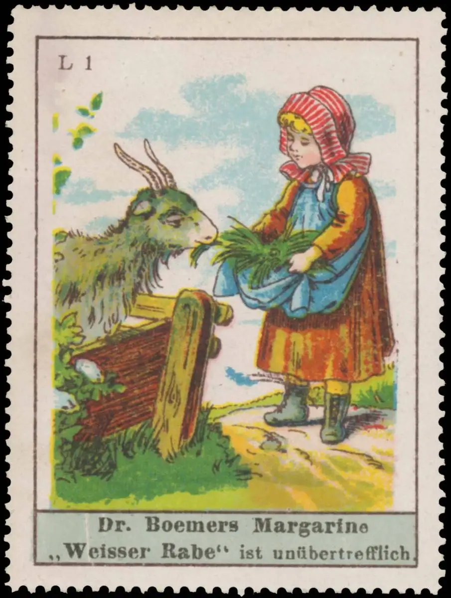 Dr. Boemers Margarine Weisser Rabe ist unübertrefflich, Bild L 1, Größe/Zustand: 7x5 , leicht fleckig, Original alte Reklamemarke die seinerzeit für die Werbung benutzt wurde
