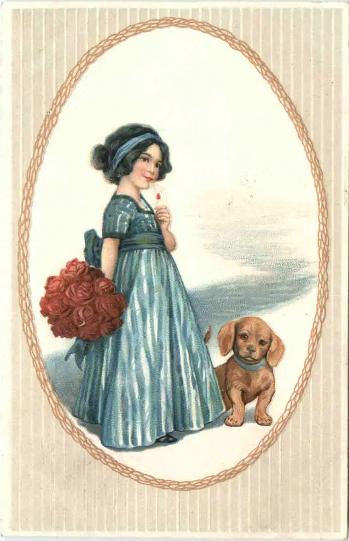 Kind mit Hund - Prägekarte -686776