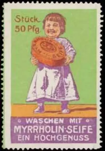 wasche mit Myrrholin Seife ein Hochgenuss, Kosmetik, Größe/Zustand: 5x4 , guter Zustand, Original alte Reklamemarke die seinerzeit für die Werbung benutzt wurde