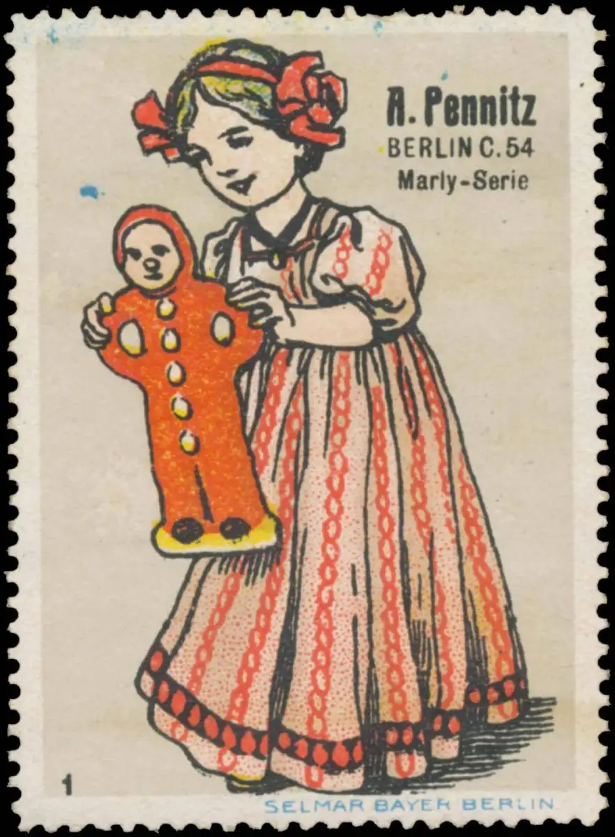 Marly-Serie, Bild 1, Ersatzkaffee, Druckerei: Selmar Bayer, Berlin, Größe/Zustand: 6x4 , Fehldruck, guter Zustand, Original alte Reklamemarke die seinerzeit für die Werbung benutzt wurde