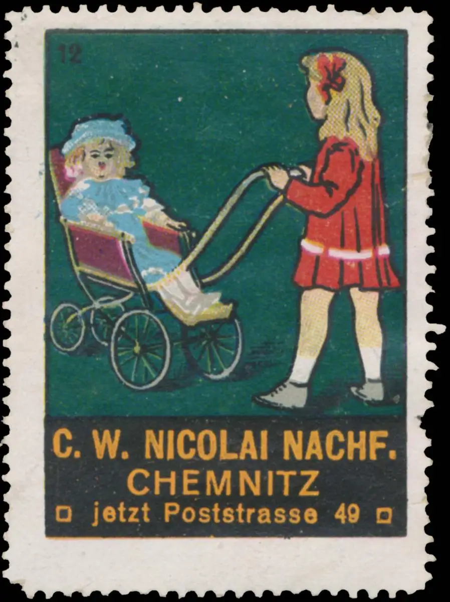 Spielzeug, 12, Poststrasse 49, Größe/Zustand: 5x4 , guter Zustand, Original alte Reklamemarke die seinerzeit für die Werbung benutzt wurde