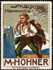 Harmonika, M. Hohner, Rückseite mit Reklame, Musik, Trossingen, Größe/Zustand: 6x5 , guter Zustand, Original alte Reklamemarke die seinerzeit für die Werbung benutzt wurde