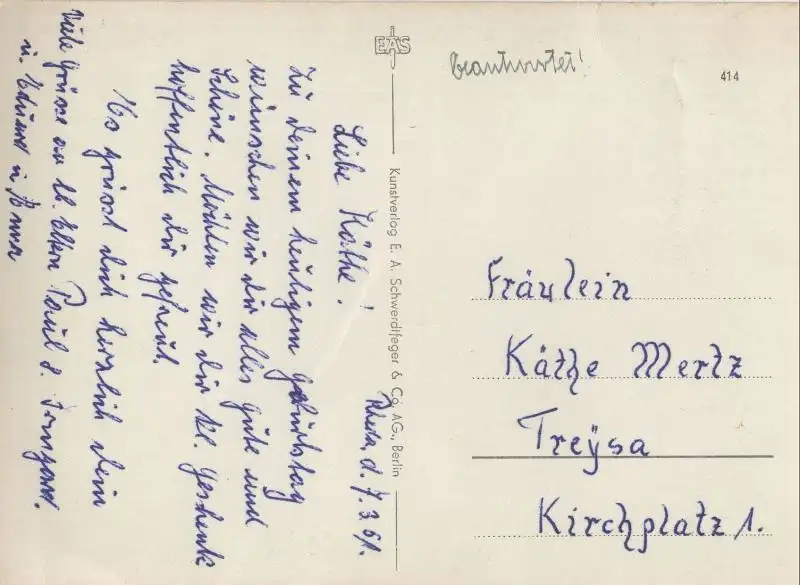 Ich hatte die Rechnung sofort als Vorkasse bezahlt, aber keine Zusendung der Karte erhalten. Trotz Nachfrage keine Rückmeldung bzw. Erklärung. Da es sich zum Glück nur um 1,70 € handelt, ist die Sache für mich erledigt, ärgerlich, aber zu verkraften. Mit den drei anderen Karten, die ich bestellt hatte, hat alles wunderbar geklappt.
