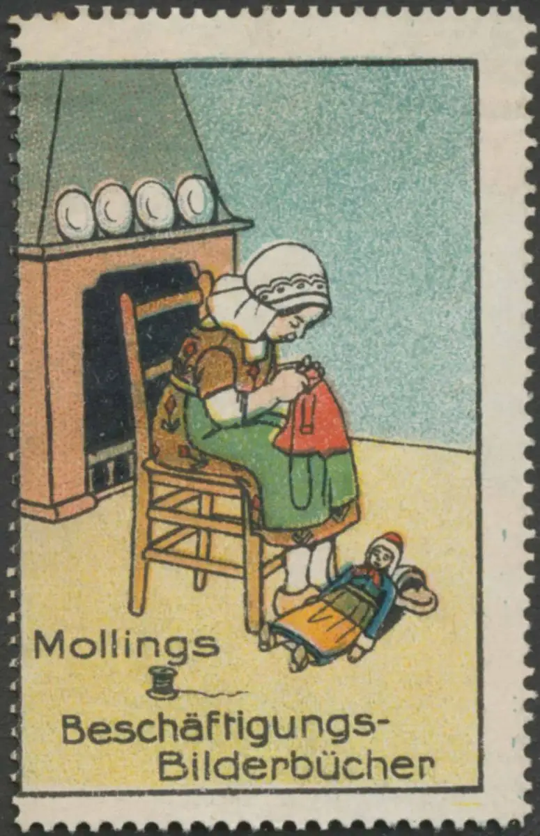 Mollings Beschäftigungs-Bilderbücher, Spielzeug, Größe/Zustand: 6x4 , guter Zustand, Original alte Reklamemarke die seinerzeit für die Werbung benutzt wurde