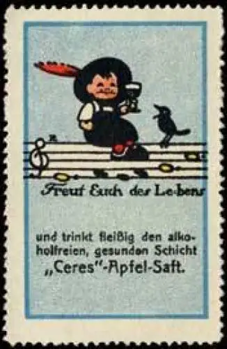 Freut euch des Lebens, Ceres Apfel-Saft, Vogel, Musik, Größe/Zustand: 6x4 , guter Zustand, Original alte Reklamemarke die seinerzeit für die Werbung benutzt wurde