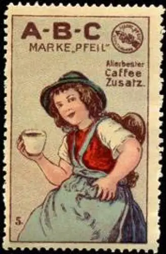 Marke Pfeil - Allerbester Caffee - Zusatz, Nr. 5, Größe/Zustand: 5x3 , guter Zustand, Original alte Reklamemarke die seinerzeit für die Werbung benutzt wurde
