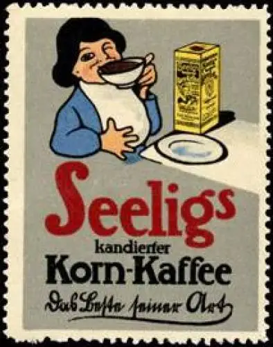 Kind trinkt Seeligs kandierter Korn-Kaffee