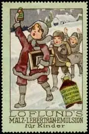 Löflunds Malz-Lebertran-Emulsion für Kinder, Größe/Zustand: 7x5 , guter Zustand, Original alte Reklamemarke die seinerzeit für die Werbung benutzt wurde