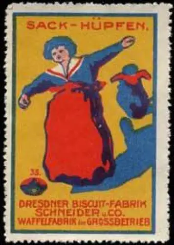 Sack-Hüpfen, Serie Spiele, Bild Nr. 35, Größe/Zustand: 5x4 , guter Zustand, Original alte Reklamemarke die seinerzeit für die Werbung benutzt wurde