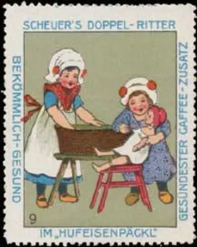 Scheuers Doppel-Ritter im Hufeisenpägkl, Kaffee-Zusatz, Größe/Zustand: 5x4 , guter Zustand, Original alte Reklamemarke die seinerzeit für die Werbung benutzt wurde