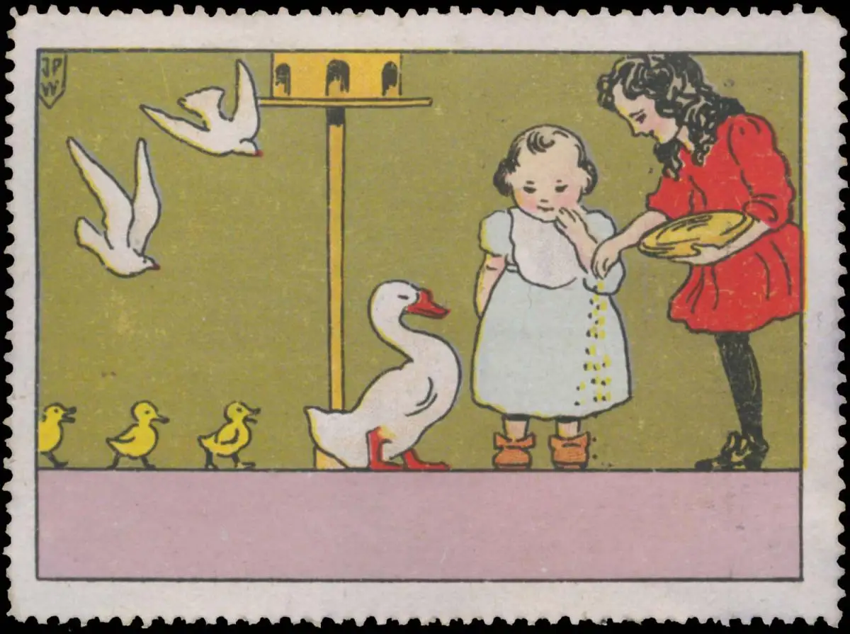 Gans, Taube, Küken, Größe/Zustand: 5x7 , fleckig, Original alte Reklamemarke die seinerzeit für die Werbung benutzt wurde