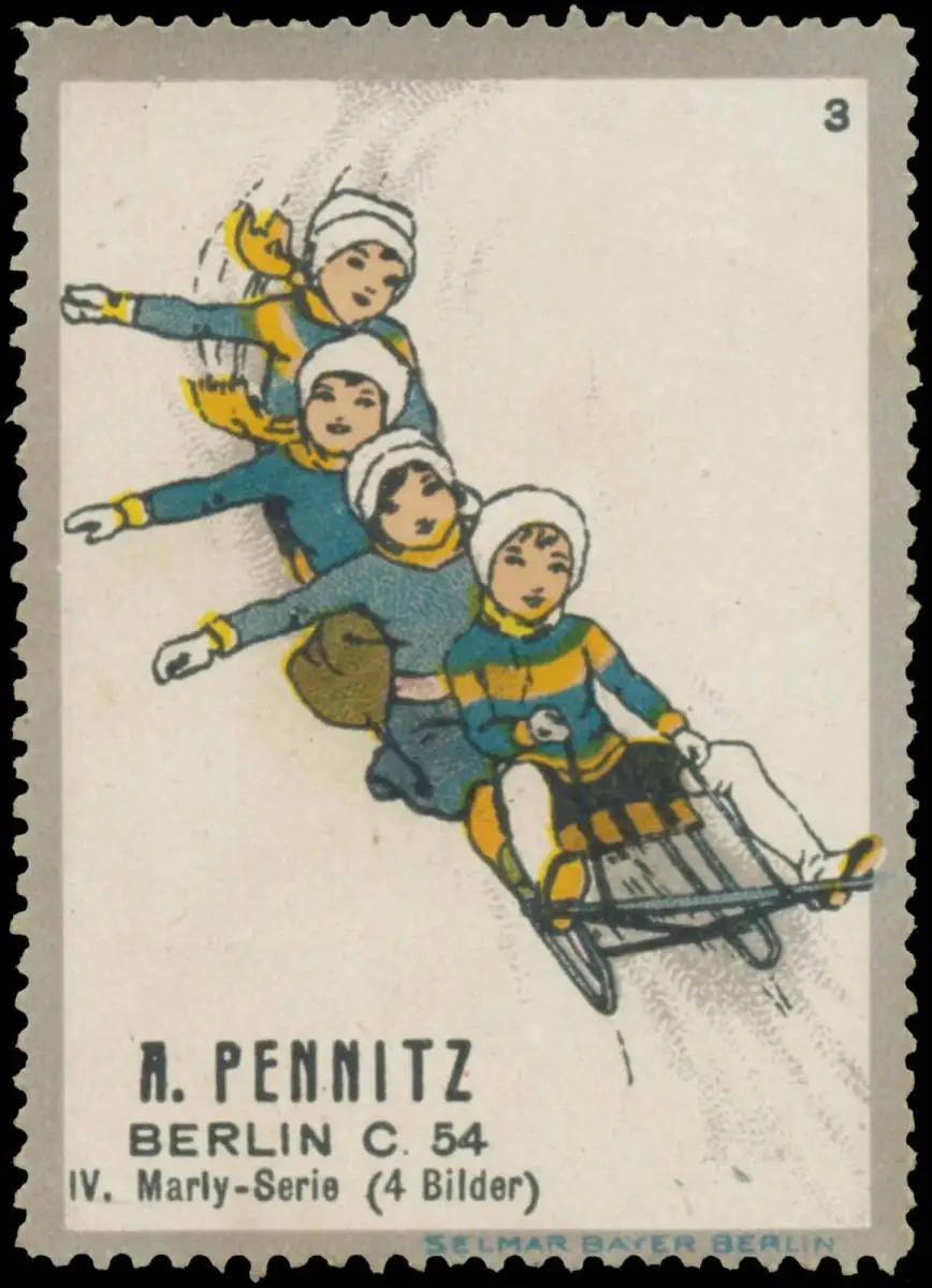 Wintersport, Marly-Serie IV, Bild 3, Druck: Selmar Bayer, Berlin, Größe/Zustand: 6x4 , guter Zustand, Original alte Reklamemarke die seinerzeit für die Werbung benutzt wurde