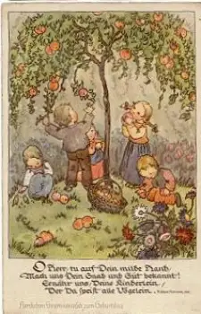 Kinder unter Apfelbaum Künstlerkarte RBS gebr. ca. 1920