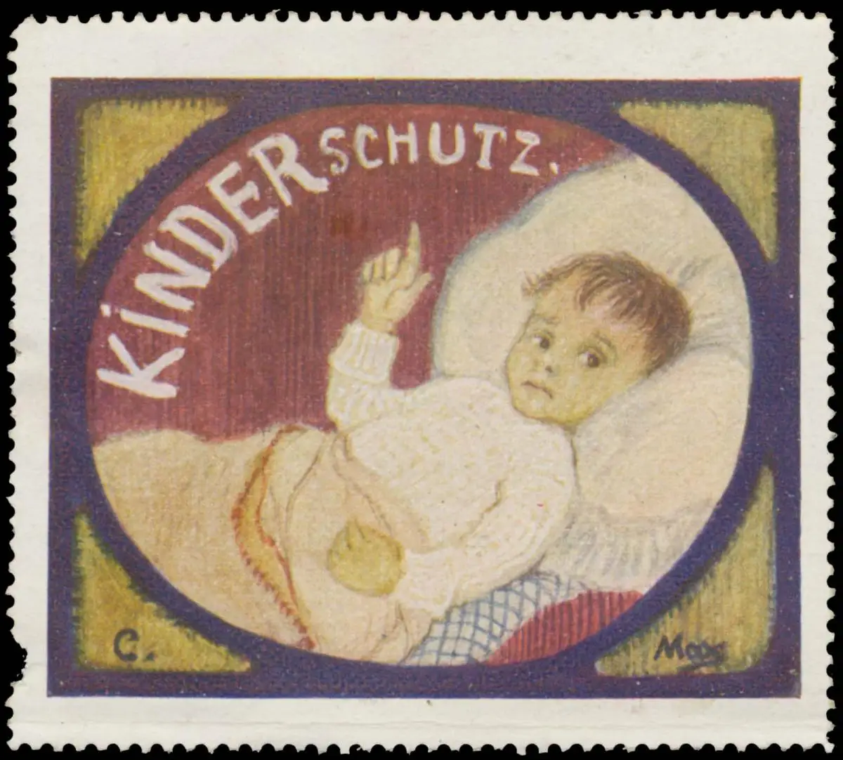 krankes Kind im Bett, Größe/Zustand: 6x7 , beschädigt, Original alte Reklamemarke die seinerzeit für die Werbung benutzt wurde
