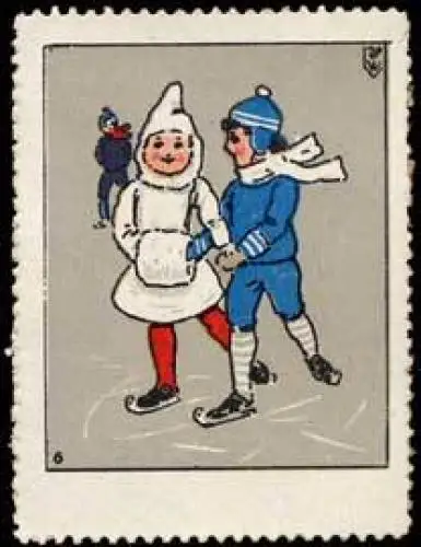 Kinder beim spielen, Bild 6, Schlittschuhlaufen, Wintersport, Größe/Zustand: 5x4 , guter Zustand, Original alte Reklamemarke die seinerzeit für die Werbung benutzt wurde
