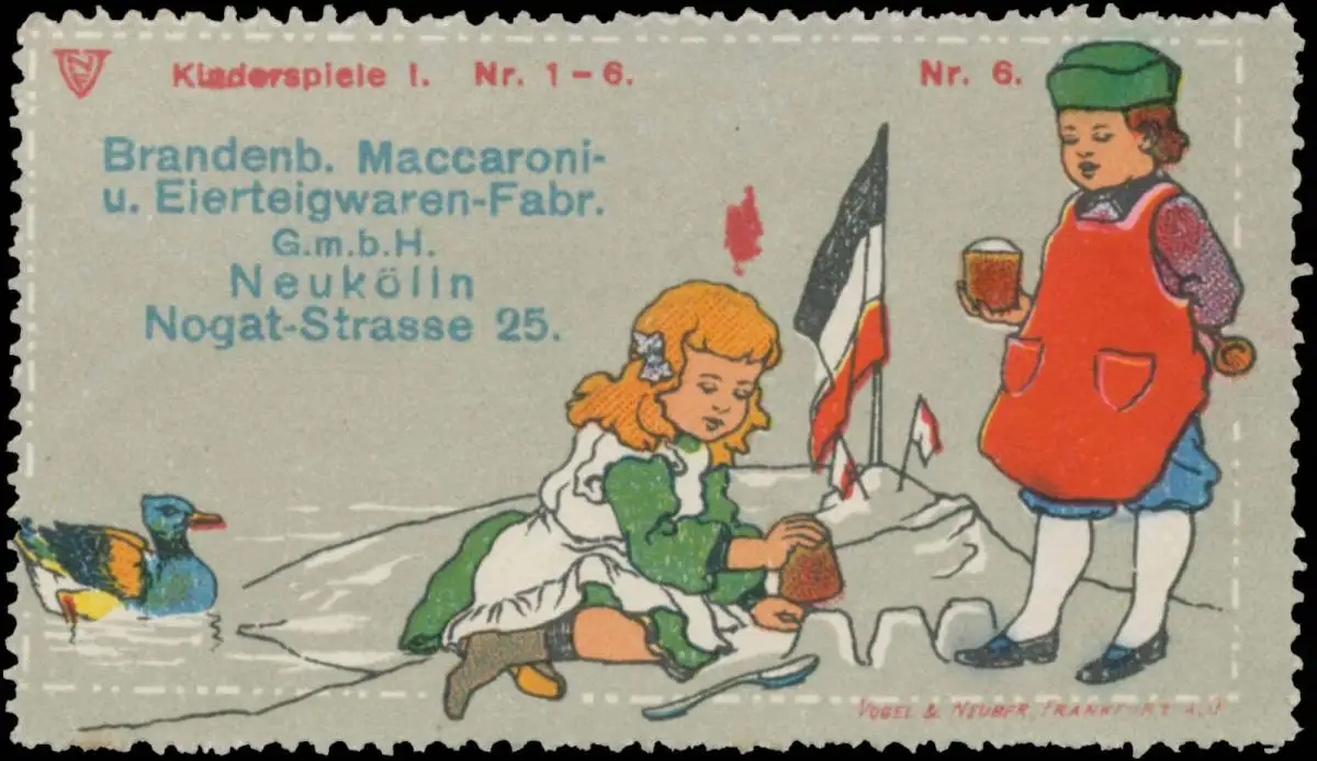 Bild 6, Spielzeug, Sandburg, Nogat-Straße 25, Neukölln, Größe/Zustand: 4x7 , guter Zustand, Original alte Reklamemarke die seinerzeit für die Werbung benutzt wurde