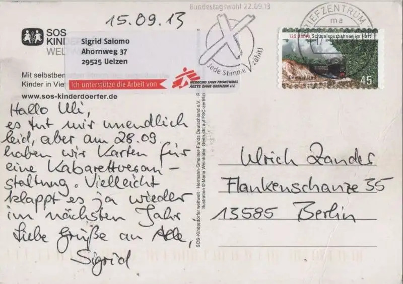 Ich hatte die Rechnung sofort als Vorkasse bezahlt, aber keine Zusendung der Karte erhalten. Trotz Nachfrage keine Rückmeldung bzw. Erklärung. Da es sich zum Glück nur um 1,70 € handelt, ist die Sache für mich erledigt, ärgerlich, aber zu verkraften. Mit den drei anderen Karten, die ich bestellt hatte, hat alles wunderbar geklappt.