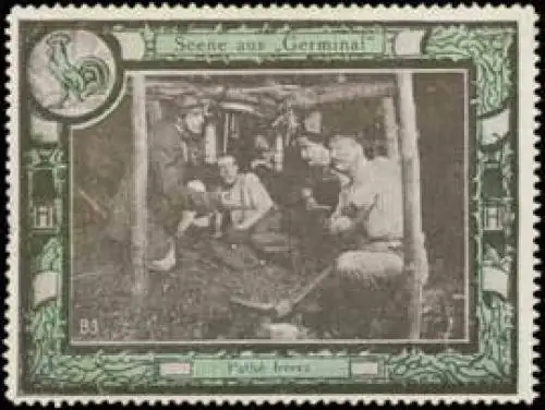 Scene aus Germinal, Größe/Zustand: 5x7 , guter Zustand, Original alte Reklamemarke die seinerzeit für die Werbung benutzt wurde