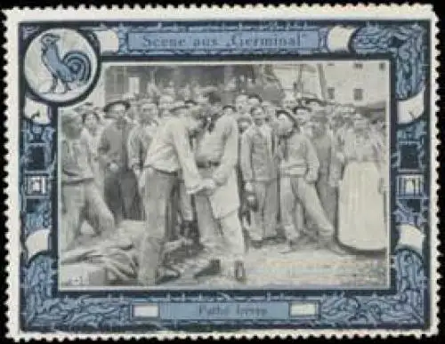 Scenen aus dem Film-Drama Germinal nach Emilie Zola, Pathé frères, Kino, Größe/Zustand: 5x7 , guter Zustand, Original alte Reklamemarke die seinerzeit für die Werbung benutzt wurde