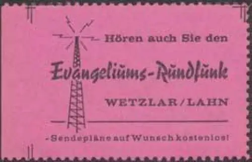 Hören auch Sie den Evangeliums-Rundfunk, Größe/Zustand: 4x6 , guter Zustand, Original alte Reklamemarke die seinerzeit für die Werbung benutzt wurde