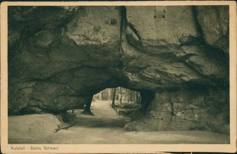 Kirnitzschtal-Sebnitz Kuhstall, Sächsische Schweiz, Felsen-Durchgang 1920