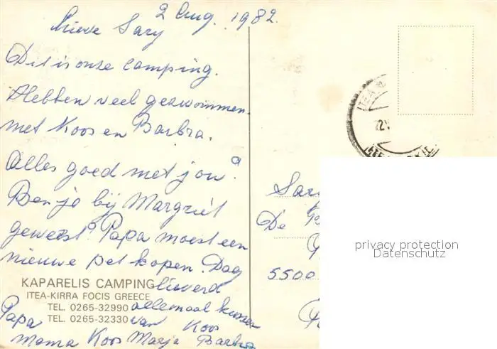 Kirra Kaparelis Camping Ansicht vom Meer aus Kuestenpanorama Blumen postalisch gelaufen 1982 Erhaltung siehe scans [FriedD77] Frierer