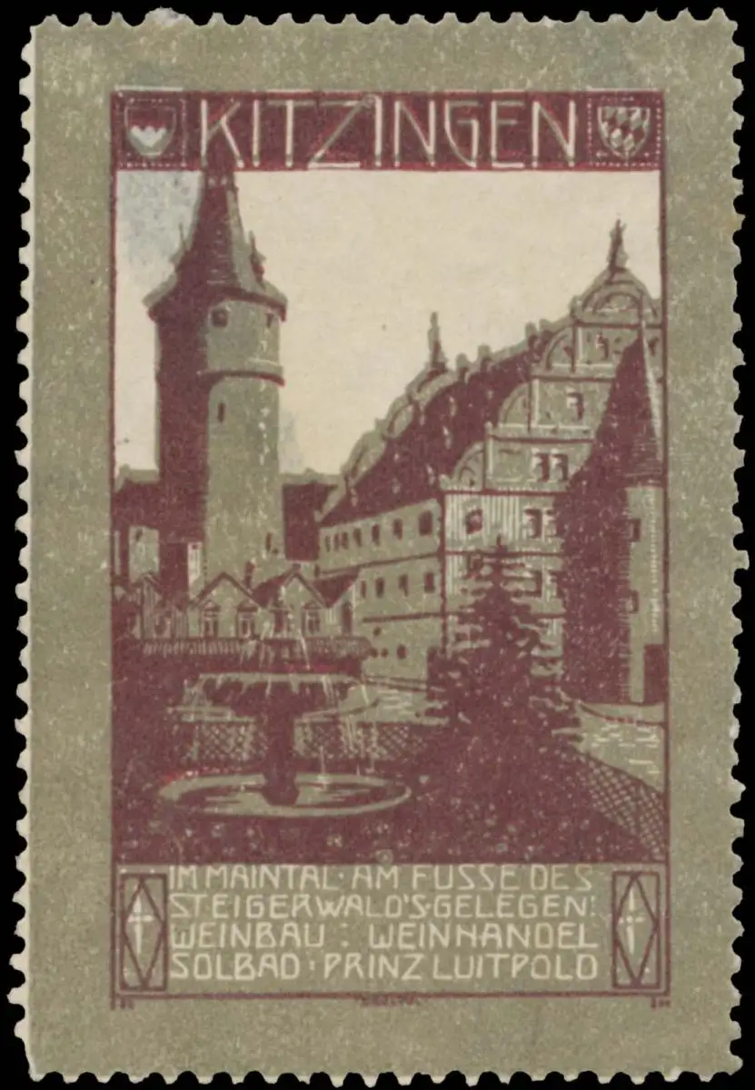 im Maintal am Fusse des Steigerwalds gelegen, Weinbau, Weinhandel, Solbad Prinz Luitpold, Tourismus, Größe/Zustand: 6x4 , beschädigt, Original alte Reklamemarke die seinerzeit für die Werbung benutzt wurde