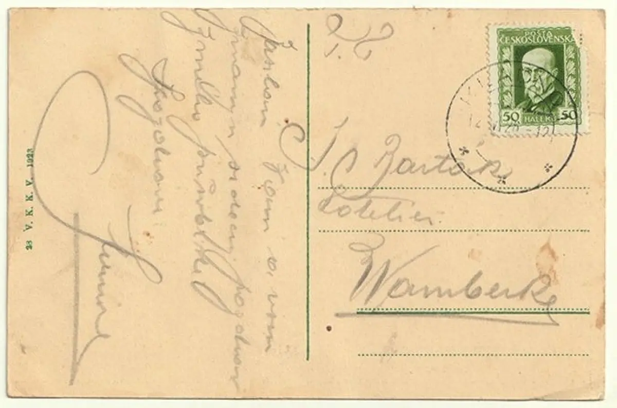 Bemerkungen: Gelaufen, von Kladno nach Vamberk [ca. 1920].