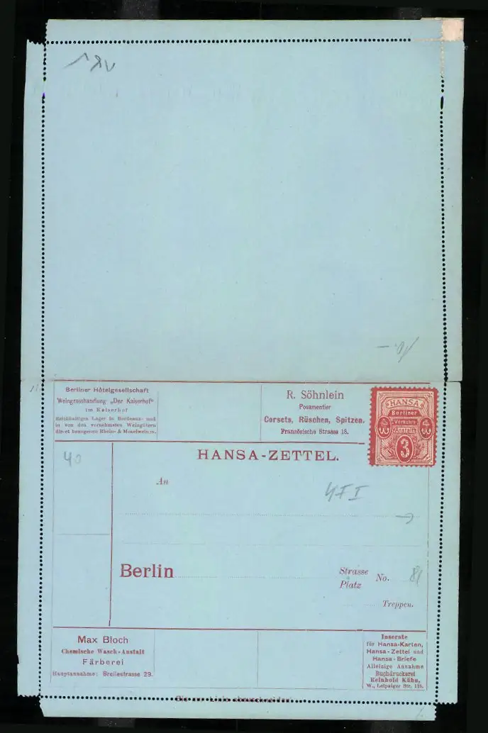 Klapp-AK Berlin, Private Stadtpost, Berliner Verkehrs Anstalt Hansa, Hansa-Zettel