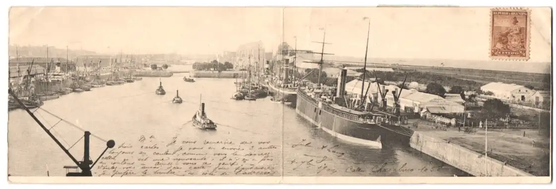 Klapp-AK Buenos Aires, Panoramablick über den Hafen