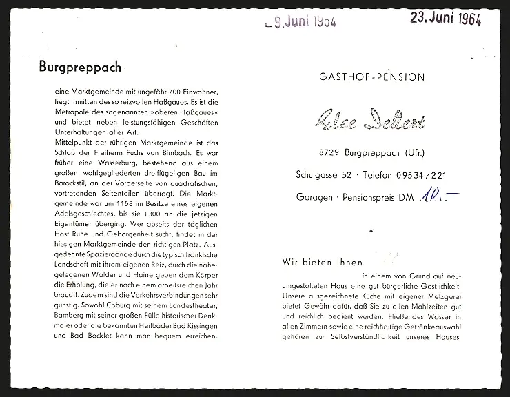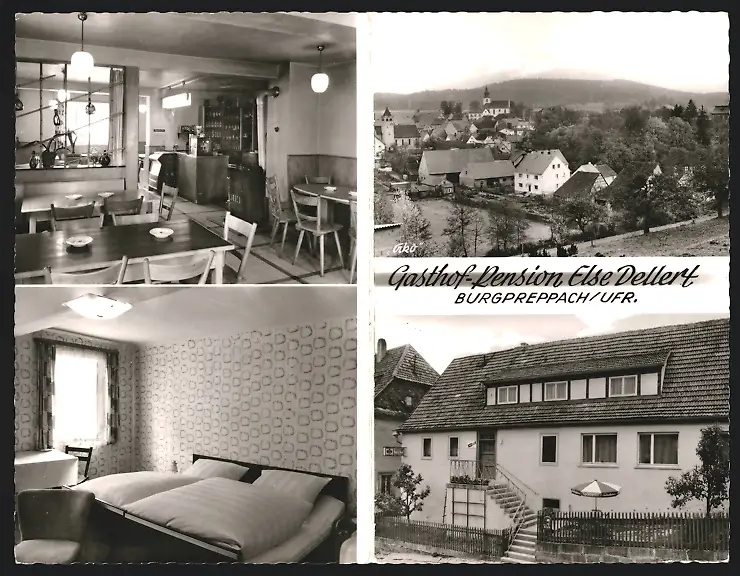 Klapp-AK Burgpreppach, Gasthof-Pension else Dellert, Schulgasse 52