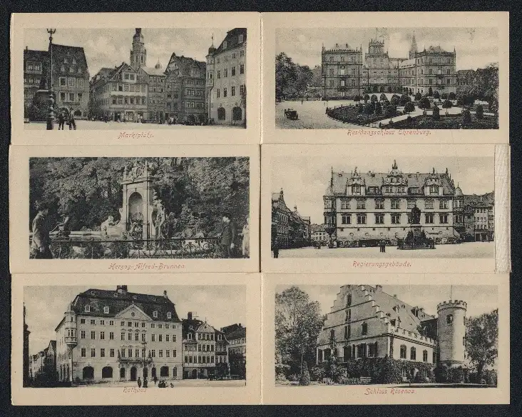 Klapp-AK Coburg, Regierungsgebäude, Hoftheater, Schloss Callenberg, etc.