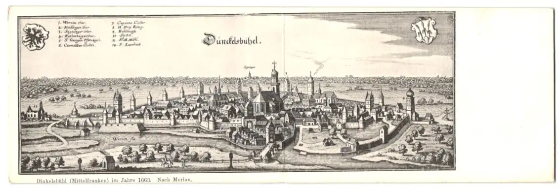 Klapp-AK Dinkelsbühl /Mittelfranken, Historisches Stadtpanorama im Jahr 1663, nach Merian