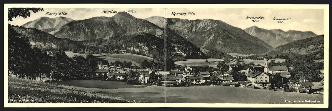 Klapp-AK Fischbachau, Ortsansicht mit Heissplatte und Jägerkamp