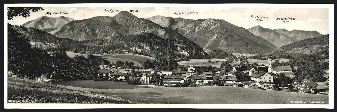 Klapp-AK Fischbachau, Ortsansicht mit Heissplatte und Jägerkamp