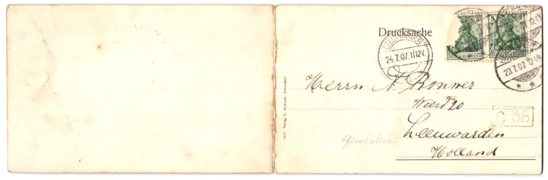 gelaufen 1907, Einriss oben am Falz, guter Zustand