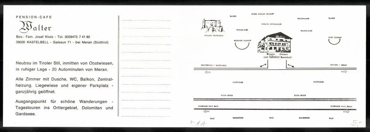 Klapp-AK Kastelbell bei Meran, Pension-Cafe Walter mit Landschaftspanorama