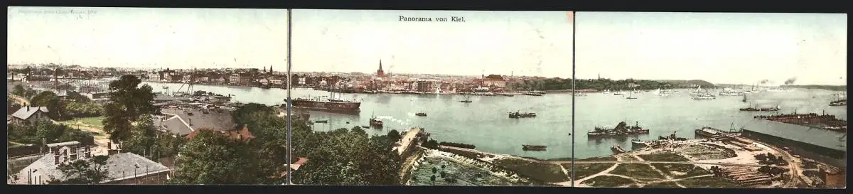 Klapp-AK Kiel, Panoramablick auf Stadt und Hafen