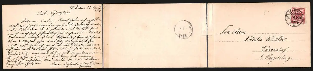 alte Ansichtskarte, gelaufen 1899, an den Falzen geklebt, guter Zustand