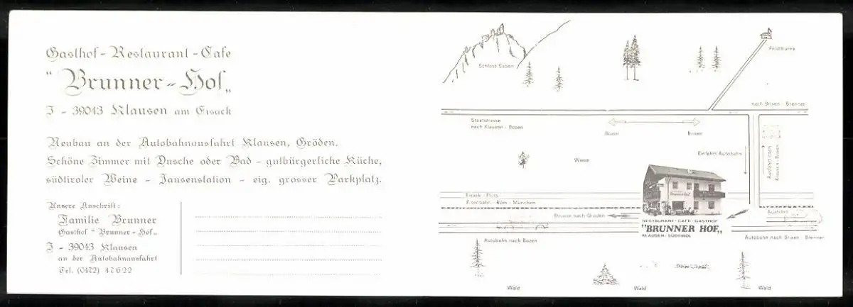 Klapp-AK Klausen am Eisack, Gasthof-Restaurant Brunner Hof an der Autobahnausfahrt