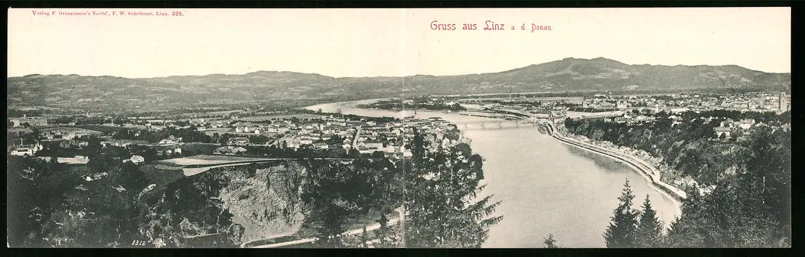 Klapp-AK Linz a. d. Donau, Totalansicht aus der Vogelschau