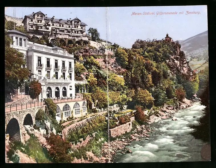Klapp-AK Meran, Gilfpromenade mit Zenoburg