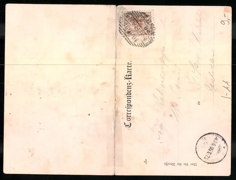 alte Ansichtskarte, gelaufen 1898, geklebter Einriss Mittelfalz, Einrisse links unten und links oben, guter Zustand