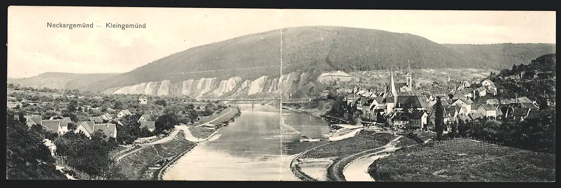 Klapp-AK Neckargemünd, Panorama mit Brücke und Kleingemünd
