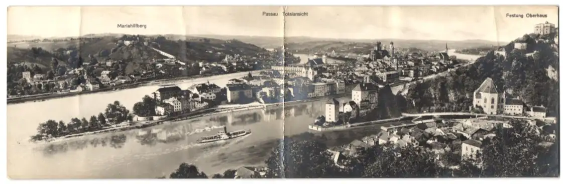 Klapp-AK Passau, Panorama mit Mariahilfberg und Festung Oberhaus