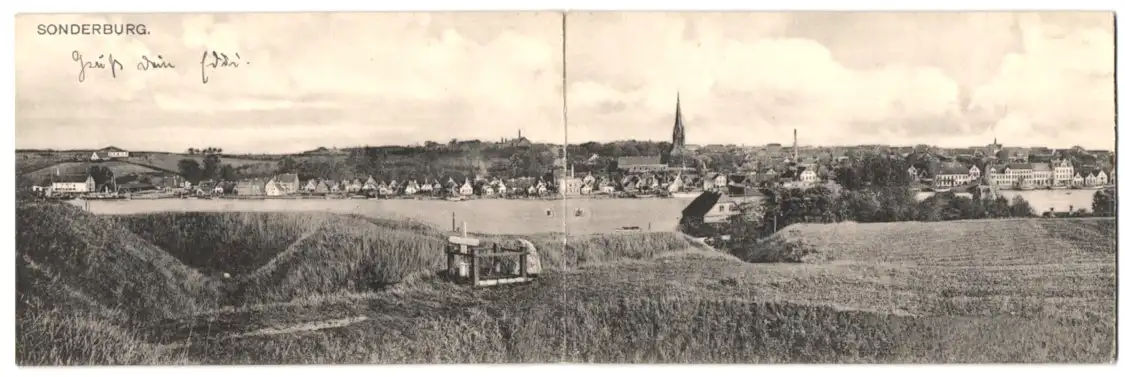 Klapp-AK Sonderburg, Totalansicht vom Feld aus