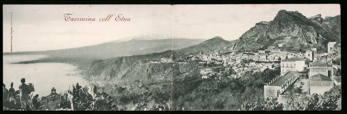 Klapp-AK Taormina, Blick gegen Etna