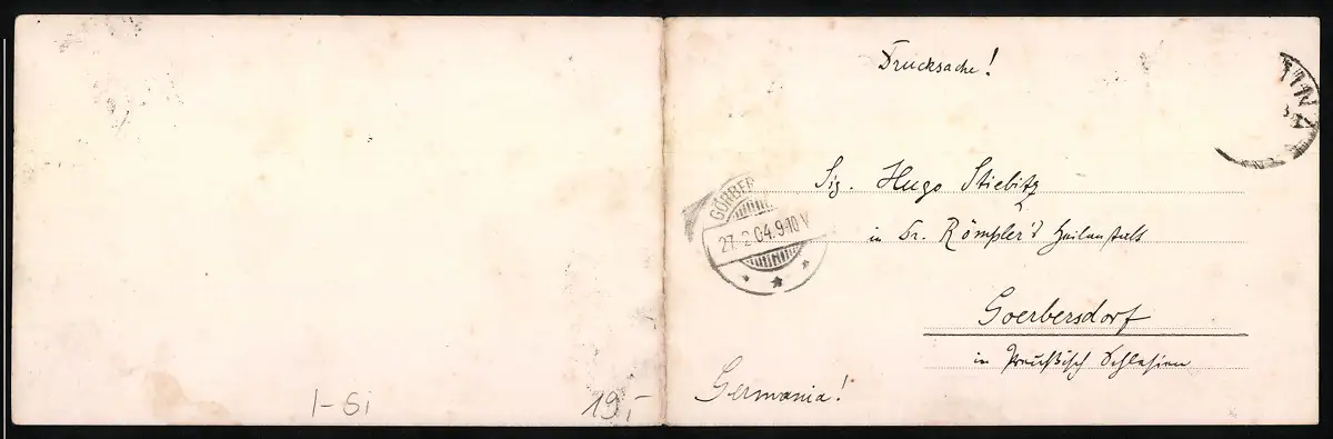 gelaufen 1904, Briefmarke entfernt, guter Zustand
